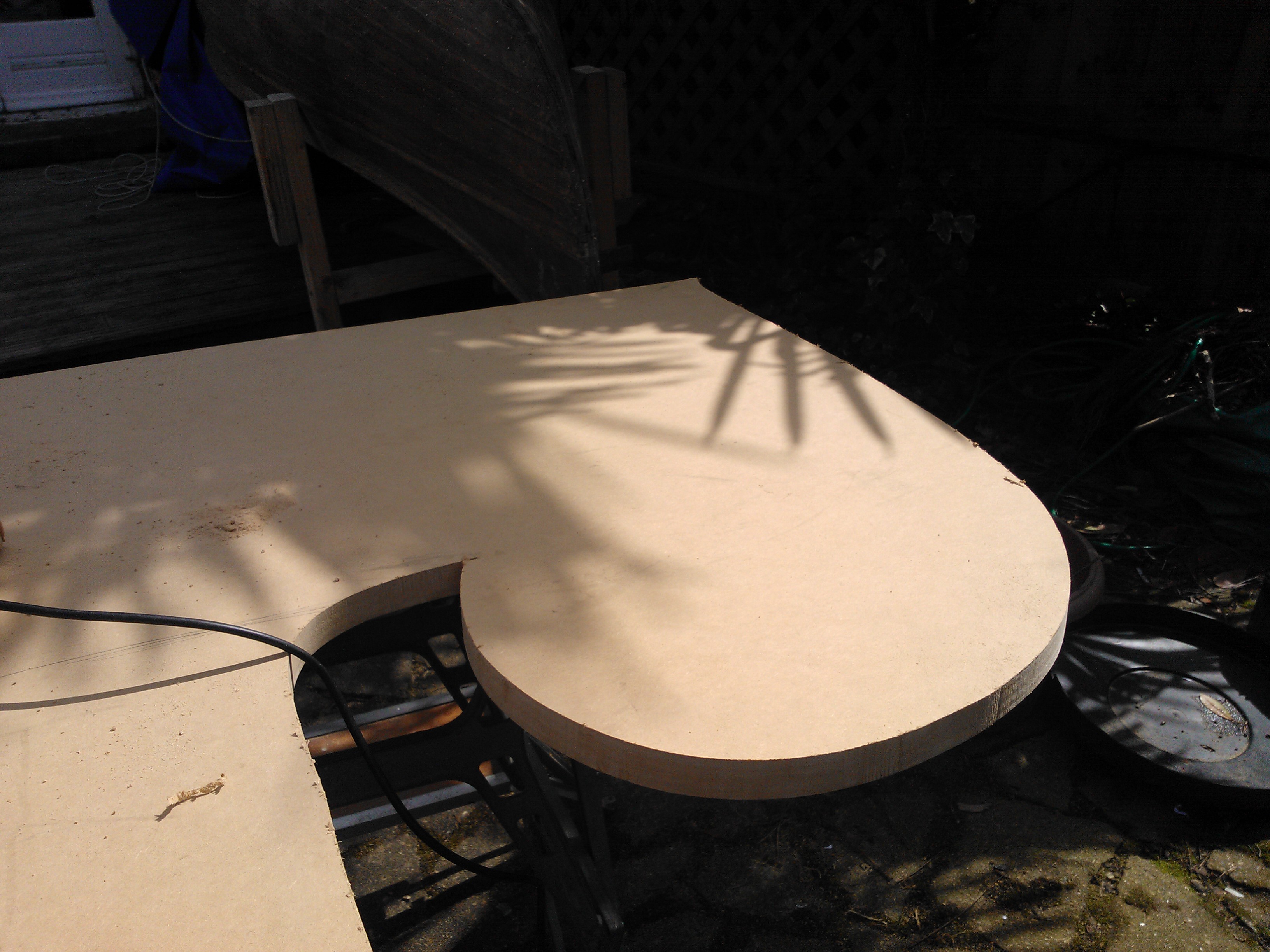 The sun was out…time to work on the canoe. First task was to remove the rotten part of the keel, then sand down the edging. Measure up a template for the replacement keel to be shaped on. Cut template on 1”thick MDF board.